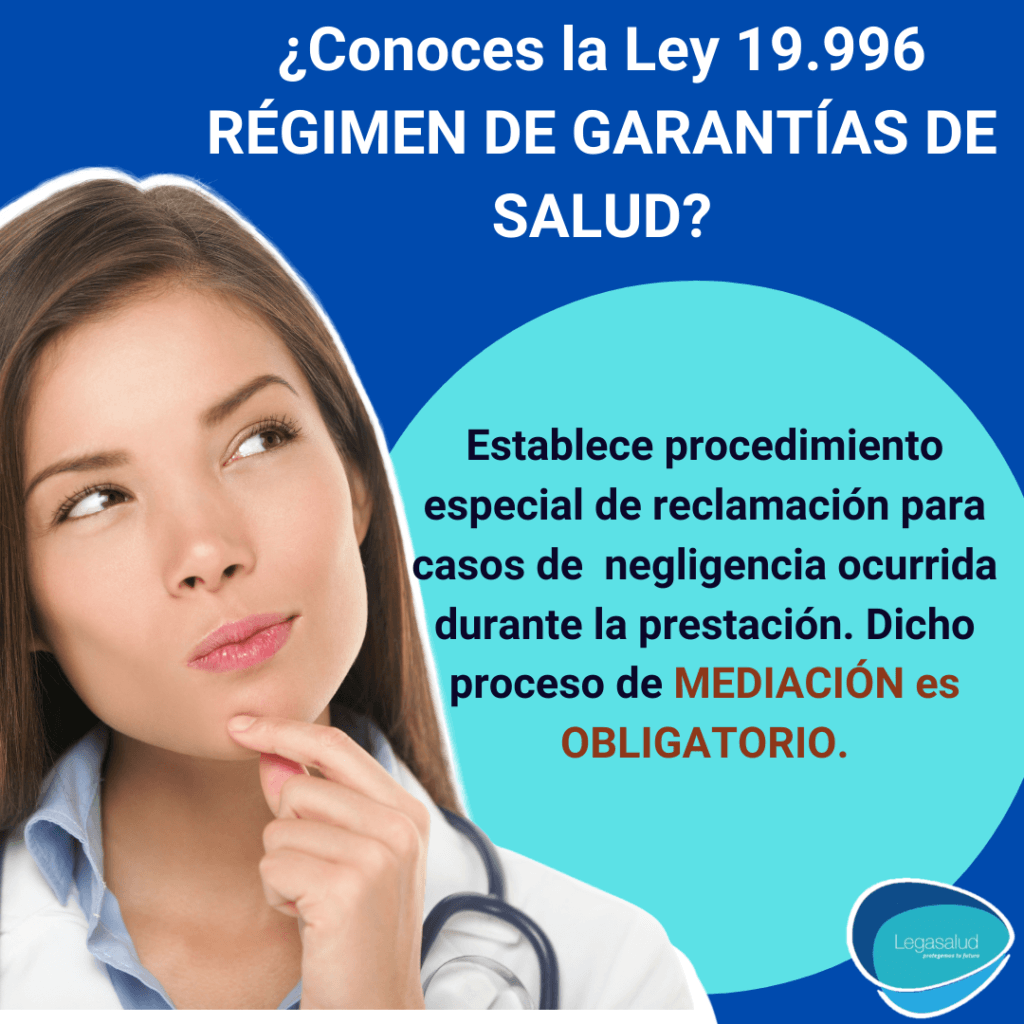 Ley 19996, Ley de Régimen de Mediación, establece el procedimiento especial de mediación obligatorio ante una negligencia médica.